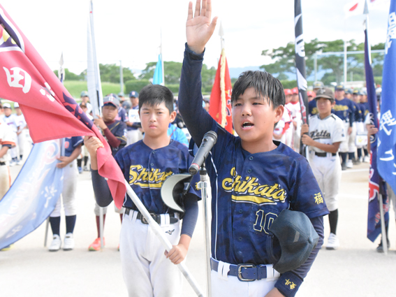 | 開会式 2025年8月24日(日曜日) 雁の巣レクリエーションセンター / ソフトボール場専用球場 選手宣誓 四箇田ボーイズ 主将 山下愛斗 |